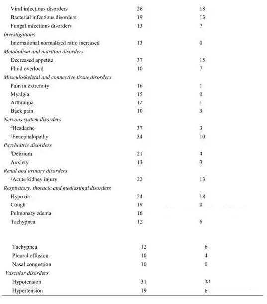 調(diào)查:血肌酐升高(7%),活化部分凝血活酶時(shí)間延長(zhǎng)(6%)