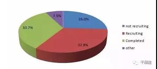 從臨床研究的所處階段的情況來看,根據可以獲得相關數據的558項臨床研究結果分析,可以發(fā)現已經完成和正在開展的臨床研究各占1/3(表2)。