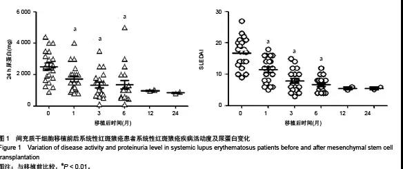 表5 間充質干細胞移植對SLE患者疾病活動度及尿蛋白的影響