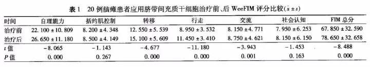 表7 解放軍323醫(yī)院應用臍帶MSCs治療腦癱結果