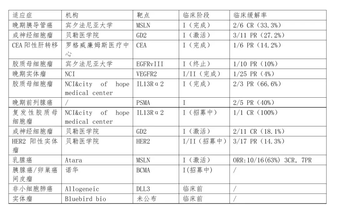 表4 采用不同策略下的實(shí)體瘤CAR-T臨床試驗(yàn)