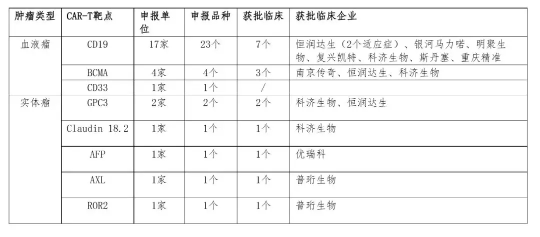 表1 CAR-T各個(gè)靶點(diǎn)國(guó)內(nèi)競(jìng)爭(zhēng)情況