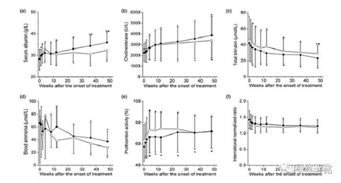 302醫(yī)院王福生嘗試?yán)媚殠чg充質(zhì)干細(xì)胞治療失代償期肝硬化(終末期肝硬化),在輸注了四次間充質(zhì)干細(xì)胞后(四周一次),50周肝功明顯改善。