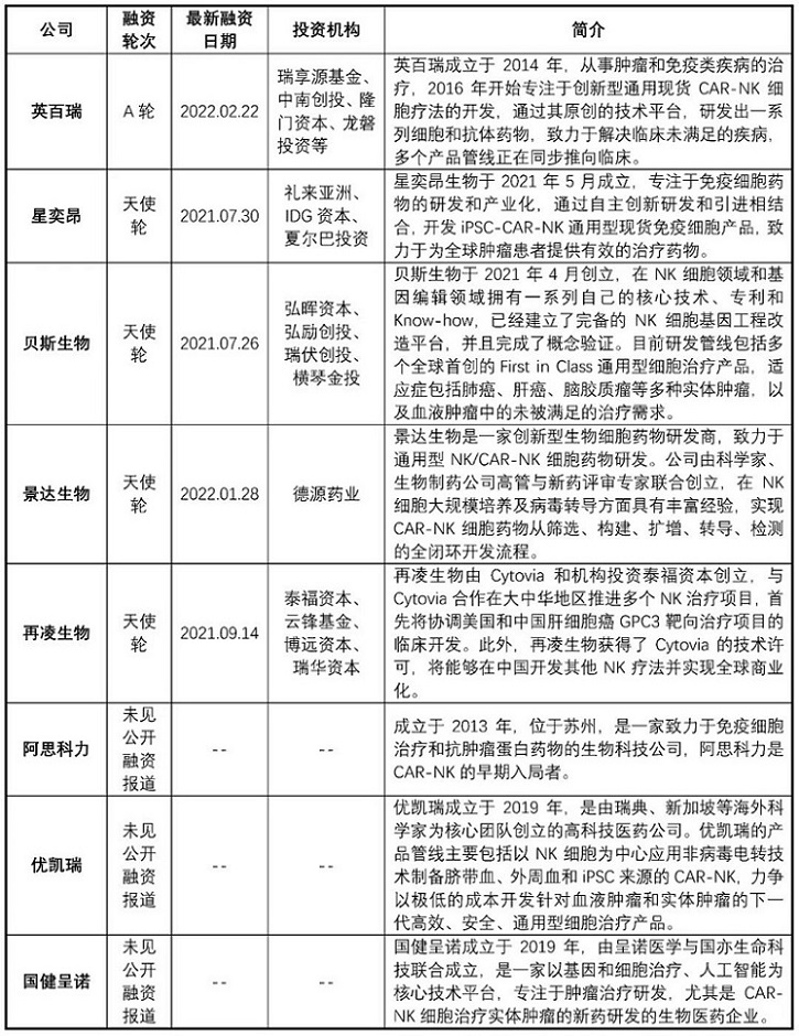 國內(nèi)CAR-NK企業(yè)融資進展(數(shù)據(jù)來源:啟信寶; 康橙投資)